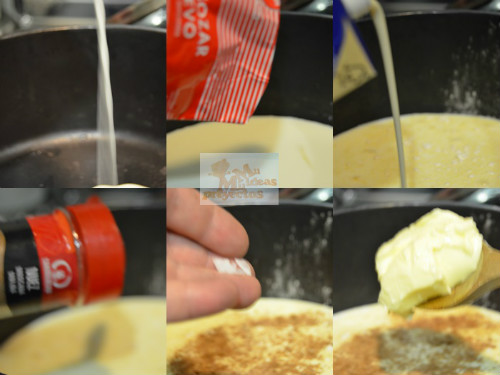 Cortamos la trucha en lomos. Aparta hervimos la leche, junto con la mantequilla y las dos cucharadas de harina, añadimos la sal, la pimienta y la nuez moscada,