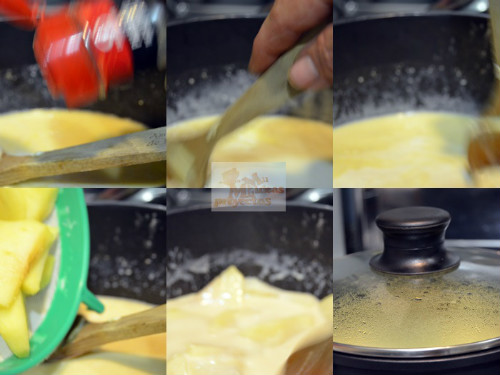 mezclamos y por último añadimos las manzanas (reservando algunas para la decoración),
