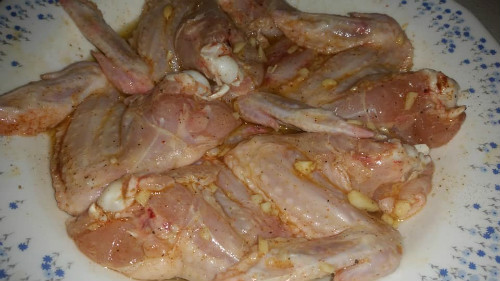 PRIMERO HACEMOS UN MACERADO CON EL AJO, SAL, PIMIENTA, PIMENTÓN, ZUMO DE LIMÓN Y ACEITE Y UNTAMOS LAS ALITAS Y DEJAMOS UNO 20 MINUTOS.