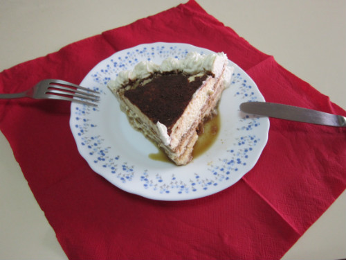 Cogemos la primera base del bizcocho, la adaptamos a un molde desmontable, la empapamos con el cafe, y seguidamente, se cubre con una buena cantidad de la crema. Colocamos la segunda base de bizcocho, y la misma operacion, y asi hasta terminar las tres bases. En la ultima, la cubrimos bien de crema, y la espolvoreamos con cola-cao. Si quiereis, lo adornais con rosetones de nata montada, y a la nevera, hasta que tenga consistencia. Si teneis alguna duda me lo preguntais, vale?. Un saludo de cris.