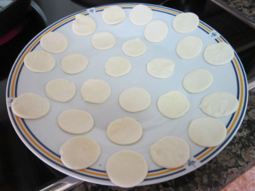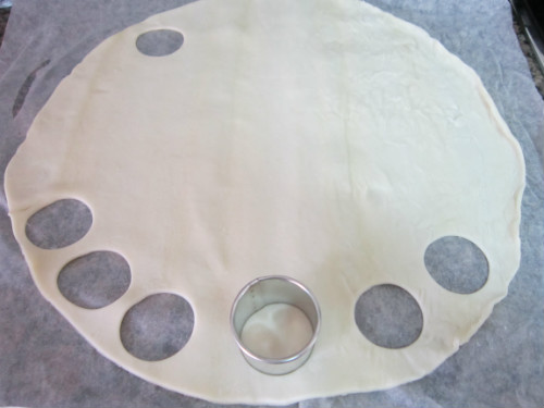 Primeramente, desenrrollamos la lamina de hojaldre, y con el corta pastas redondo, vamos dando forma a los buñuelos.