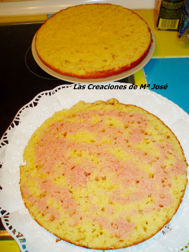 Hacemos el bizcocho y lo partimos en 2, lo remojamos con el licor de frambuesa. Hacemos la crema pastelera; Batimos 2 huevos y le vamos echando poco a poco 4 cucharadas de azúcar, 3 cucharadas de harina, 375 ml de leche y 3 cucharadas de cacao en polvo, batimos todo muy bien y lo ponemos a hervir sin dejar de remover para que no se peguen en el fondo de la cazuela Cuando este espeso dejar enfriar un poco y echarlo encima del bizcocho, poner la parte de arriba del bizcocho y meterlo al frigorífico 4 horas. Para decorar yo hice una glasa pero en vez de huevos utilice leche. 50 ml de leche e ir echando azúcar glas hasta que quede a vuestro gusto, yo lo deje clarito. La decore con esas galletitas que me mandaron los de Galletas Coral.