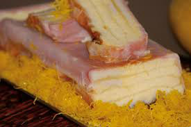 Al sacarlo del horno se deja enfriar y se desmolda en una fuente de la medida del molde. Una vez frío vas cortando con cuidado trozos de unos dos centímetros.