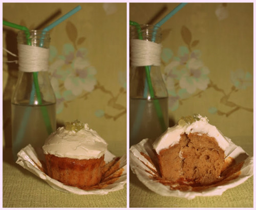 Cuando la crema esté lista, cubrimos nuestros cupcakes y decoramos, yo utlicé limón seco en trocitos.