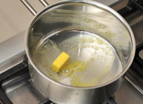 • Derretir la mantequilla a fuego lento en un cazo, añadir la nata líquida,