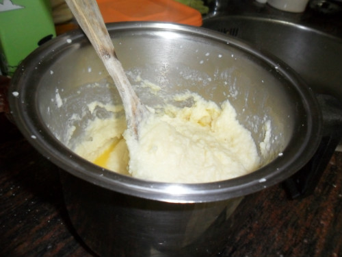 en un cazo se prepara el sobre de puré de patatas instantáneo que se va a usar como guarnición