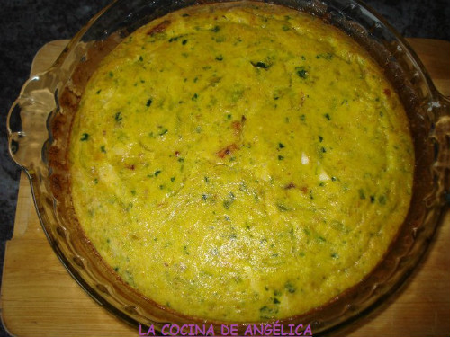 Picamos la panceta en taquitos y doramos ligeramente en una sartén. Añadimos los puerros cortados muy finitos y cuando estén pochados añadimos las espinacas y apagamos el fuego. Batimos el resto de ingredientes y añadimos la panceta. Al horno 20 minutos a 180 ºC.