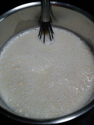 En 1/2 taza de agua, disolver la gelatina sin sabor, y una vez disuelta, agregar a la leche y al agua.