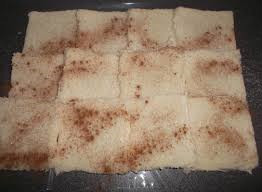 A continuación espolvorearemos el pan de molde con azúcar y un poco de canela.