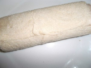 .-Con la ayuda de un rollo de cocina amasaremos el pan de molde, hasta que quede una masa