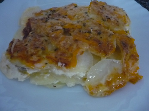 Batir los huevos y añadir la nata. Mezclar y echar sobre la fuente de horno. Mover un poquito para que vaya entrando la mezcla.