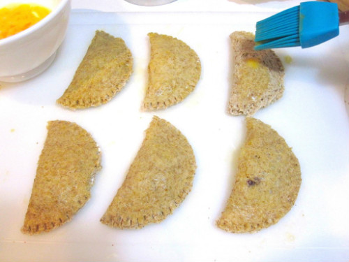 Una vez estén bien selladas las pintamos con huevo batido y las metemos en el horno a 200 grados unos 5 minutos aproximadamente.