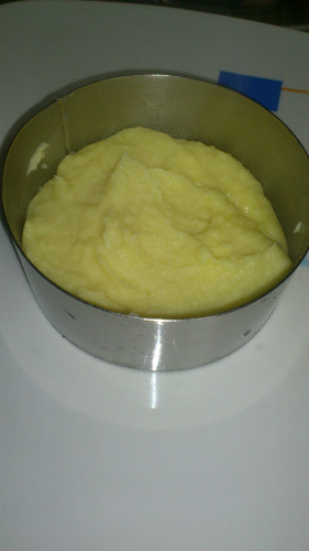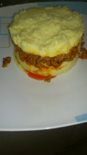 freímos el picadillo de chorizo y colocamos una base encima del pure
