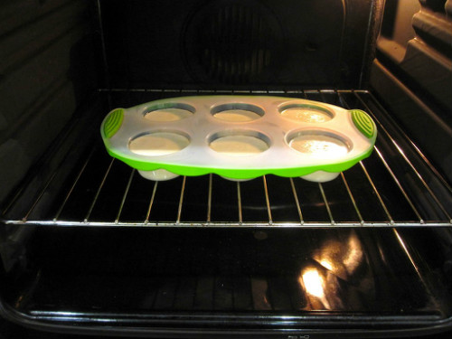 Vertemos la mezcla en los moldes y dejamos hornear unos 10 min (dependiendo del molde) hasta que se quede dorada la quesada.
