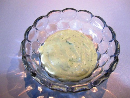 Para la salsa, ponemos en un vaso de la Thermomix dos cucharadas de Philadelphia, medio aguacate, una chalota, un poquito de eneldo, medio limón exprimido y trituramos todo hasta conseguir una salsa homogénea. Una vez triturada le añadimos las huevas de lumpo.