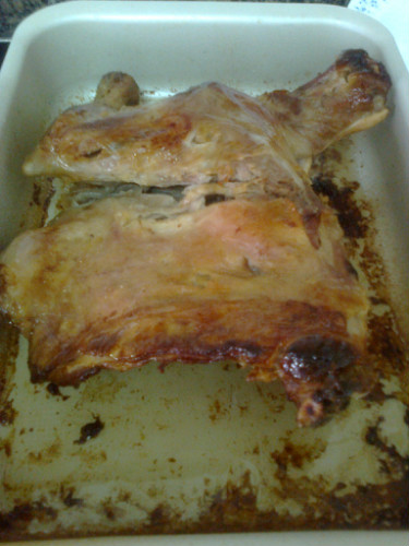 UNA VEZ TRANSCURRIDO EL TIEMPO, ESCURRIMOS EL AGUA, LO SALAMOS POR TODOS LOS LADOS , Y LE ECHAMOS UN CHORREON DE ACEITE Y AL HORNO , ENTRE 190 - 200 ºC, DEPENDIENDO DE CADA HORNO, CLARO, EN POSICION TURBO,