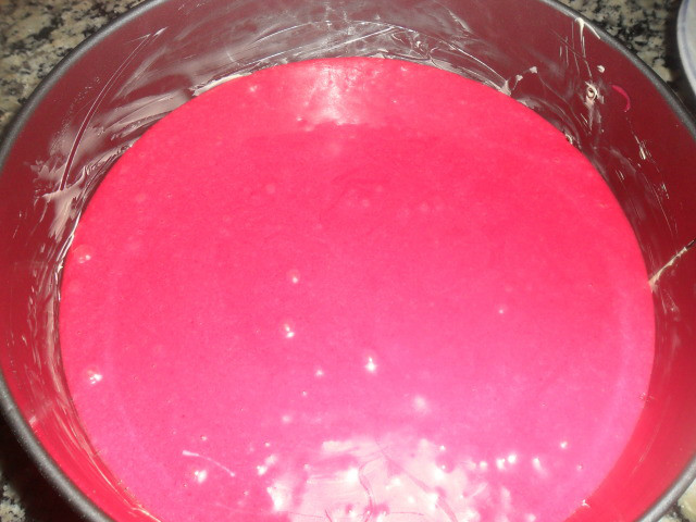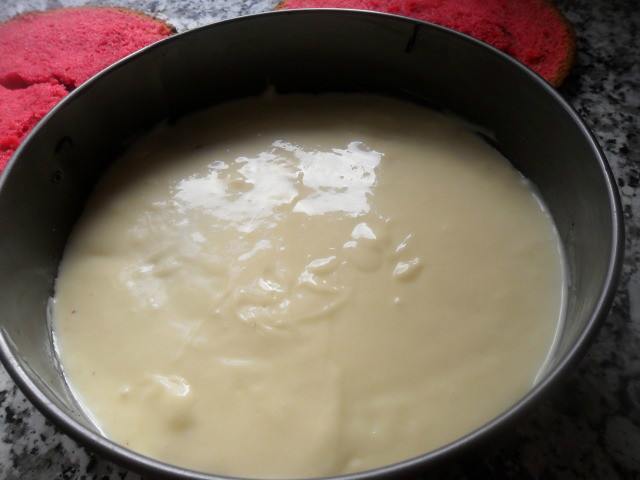 dentro del molde que habíamos usado para hacer el bizcocho.
