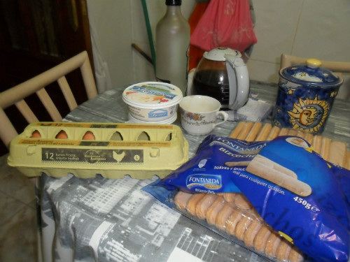 preparar los ingredientes, los bizcochos que yo he usado son los de fontaneda, la nata he cogido una tarrina de crema fresca de nata y en lugar de licor de amaretto he usado licor de avellanas que es muy similar.