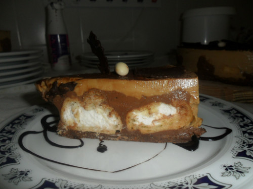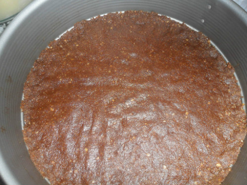 Trituramos las galletas, las mezclamos con el chocolate y la mantequilla fundidos y cubrimos la base del un molde desmontable.