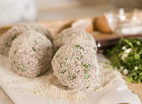 MIENTRAS TANTO. SE PREPARA LA PELOTA: SE TRITURA LA CARNE Y SE AMASA EN UN BOL CON EL PEREJIL PICADO LA SAL , LA PIMIENTA, EL HUEVO BATIDO, EL AJO PICADO , PAN RALLADO , SE HACE UNA PELOTA ALARGADA Y SE PASA POR LA HARINA PARA QUE QUEDE MAS COMPACTA