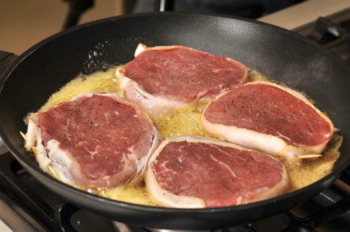 - EN SARTÈN AL FUEGO CON ACEITE DE OLIVA. MARCAREMOS VUELTA Y VUELTA LOS FILETES. SALPIMENTAMOS Y COLOCAMOSEN UNA PLAC DE HORNO