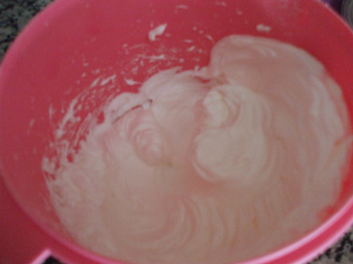 Batir las claras a punto de nieve, con los 50 gr. de harina restantes.