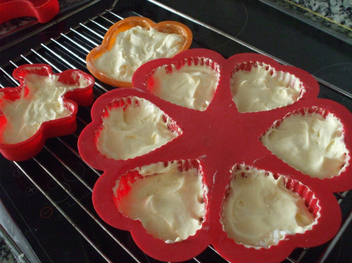Engrasar los moldes, poner la mezcla sin llegar a llenarlos del todo.