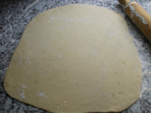Con el rodillo estiramos la masa de un grosor de 3 ml. aproximadamente.