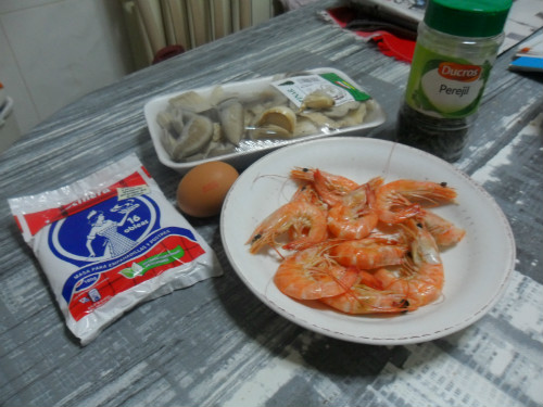 preparar los ingredientes, sacar las obleas de la nevera antes de usarlas para que se despeguen más fácilmente, los langostinos se pueden cocer en el momento dejandolos enfriar o comprarlos cocidos.