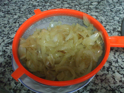 Mientras tanto freímos la cebolla escurrimos y reservamos.