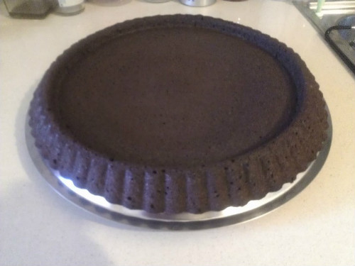 Precalentar el horno a 180º C. Unte con mantequilla o aceite un molde bajo de unos 23 cm con forma de hueco en el centro. Bata la mantequilla y las yemas hasta hacer una crema. Añadir el azúcar glas, el cacao y la harina de maíz todos tamizados. Añadir las nueces y mezclar.