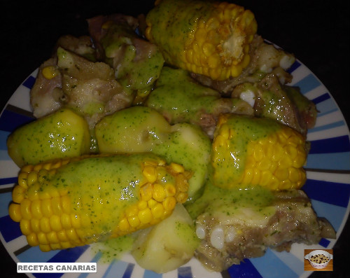 otro plato muy típico de las canarias, lo más complicado es encontrar las costillas saladas en la península. pero merece la pena por su sabor, tomandolas con un mojo verde.