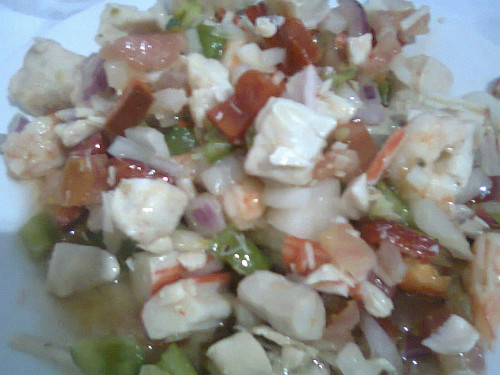 Picar los huevos en trozos y adornar el salpicón por encima.