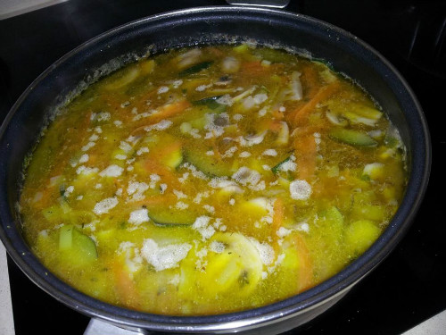 Ponemos una olla con aceite a calentar, añadimos las verduras picadas en trozos pequeños, la pimienta y la sal, dejamos cocer hasta que estén blandas.