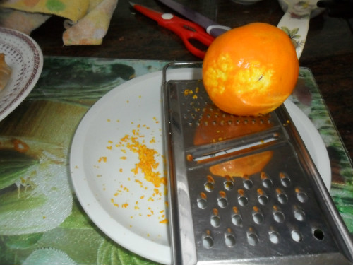 lavar la naranja y rallar la piel en un plato