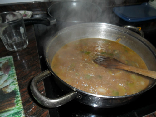 preparar los ingredientes, el caldo lo tenemos preparado de antemano, se puede usar tanto de pollo como de carne, en este caso he usado de pollo