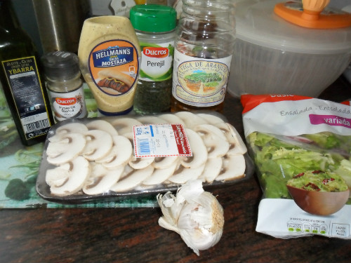 preparar los ingredientes, los champiñones se pueden coger ya laminados o enteros usando en lugar de una bandeja 2