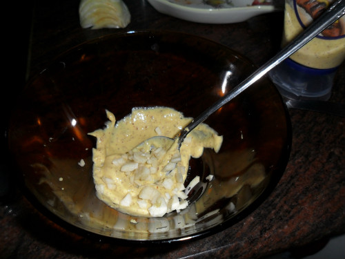 en cuenco ir preparando, la mostaza con el diente de ajo muy picado