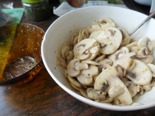 echar la vinagreta sobre los champiñones y tener macerando al menos media hora