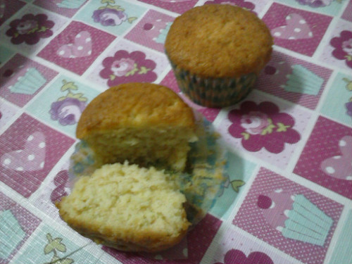 Ponemos las cápsulas de papel de magdalenas en las bandejas especiales para ellas y repartimos la masa por las cápsulas.