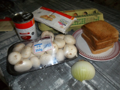 preparar los ingredientes, he elegido pan de molde integral pero se puede sustituir por pan de molde blanco o incluso de pasas y nueces
