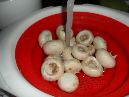 lo primero de todo lavar y escurrir bien los champiñones para que no tengan nada de tierra