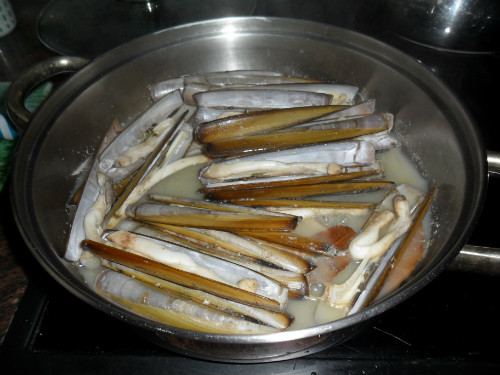 poner al fuego una cazuela con un poco de agua y echar las navajas justo hasta que se abran porque si se tienen más tiempo se secan y endurecen