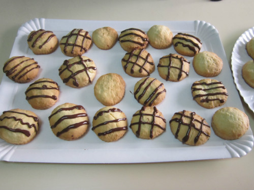 CUANDO ESTE, DERRETIDO, LO INTRODUCIMOS EN UNA MANGA PASTELERA , CORTAMOS UN POCO EL PICO DE LA MANGA , DE MANERA QUE NOS SALGA SOLO UN HILO DE CHOCOLATE, Y DECORAMOS NUESTRAS GALLETAS.