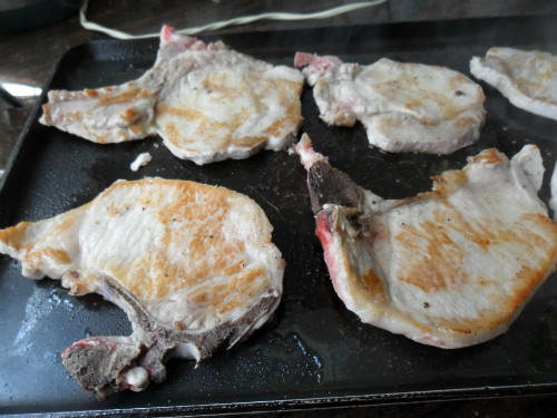 poner en la plancha de asar otras 2 cucharadas de aceite y hacer las chuletas