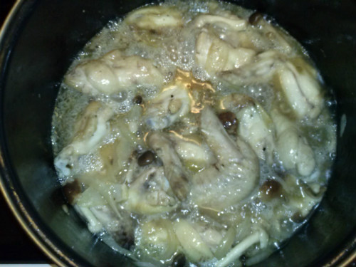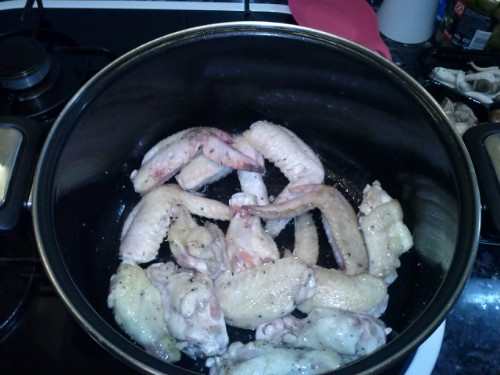 Dorar el pollo en la olla o sartén con un poco de aceite. Retirar y reservar.
