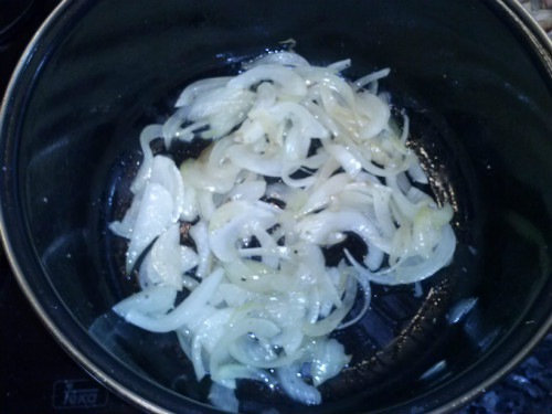 Pochar la cebolla en la misma olla a fuego lento hasta que quede transparente.