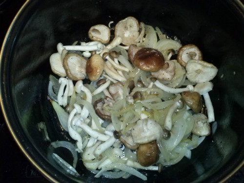 Añadir las setas, salpimentar y sofreír durante 2 minutos.