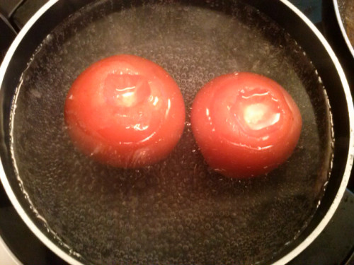 Poner los tomates en agua hirviendo durante 1 minuto.