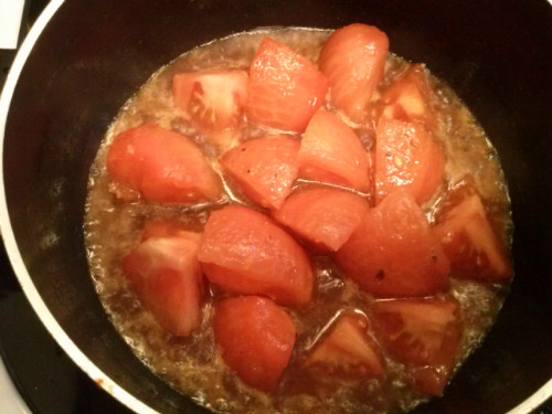 Mientras tanto, poner al fuego los tomates con el aderezo unos 2 minutos.
